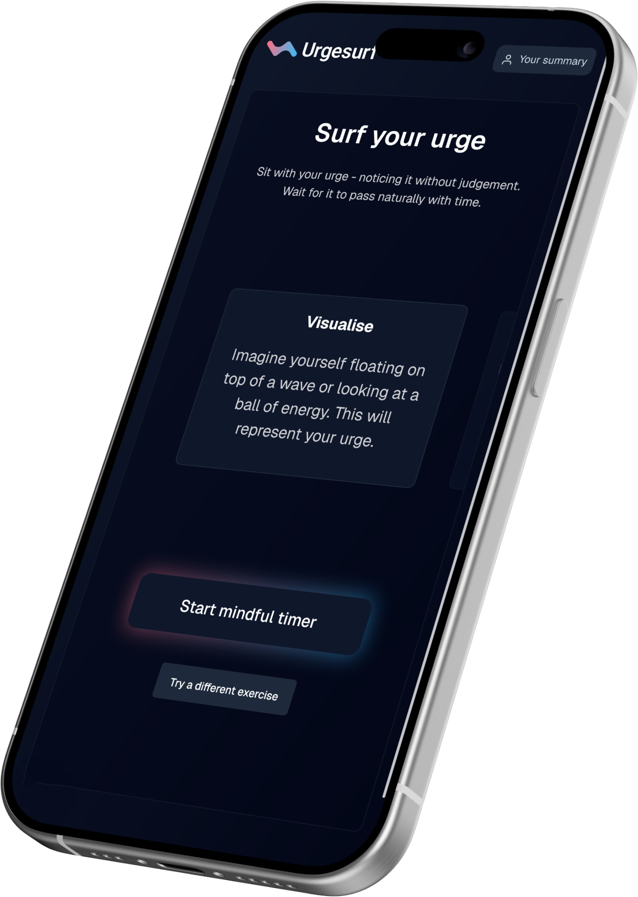 We'll provide you with a crucial delay before your urge where you can either engage in a mindful exercise, journal and reflect in the moment, or wait a few seconds before continuing onto your urge. No judgement here!