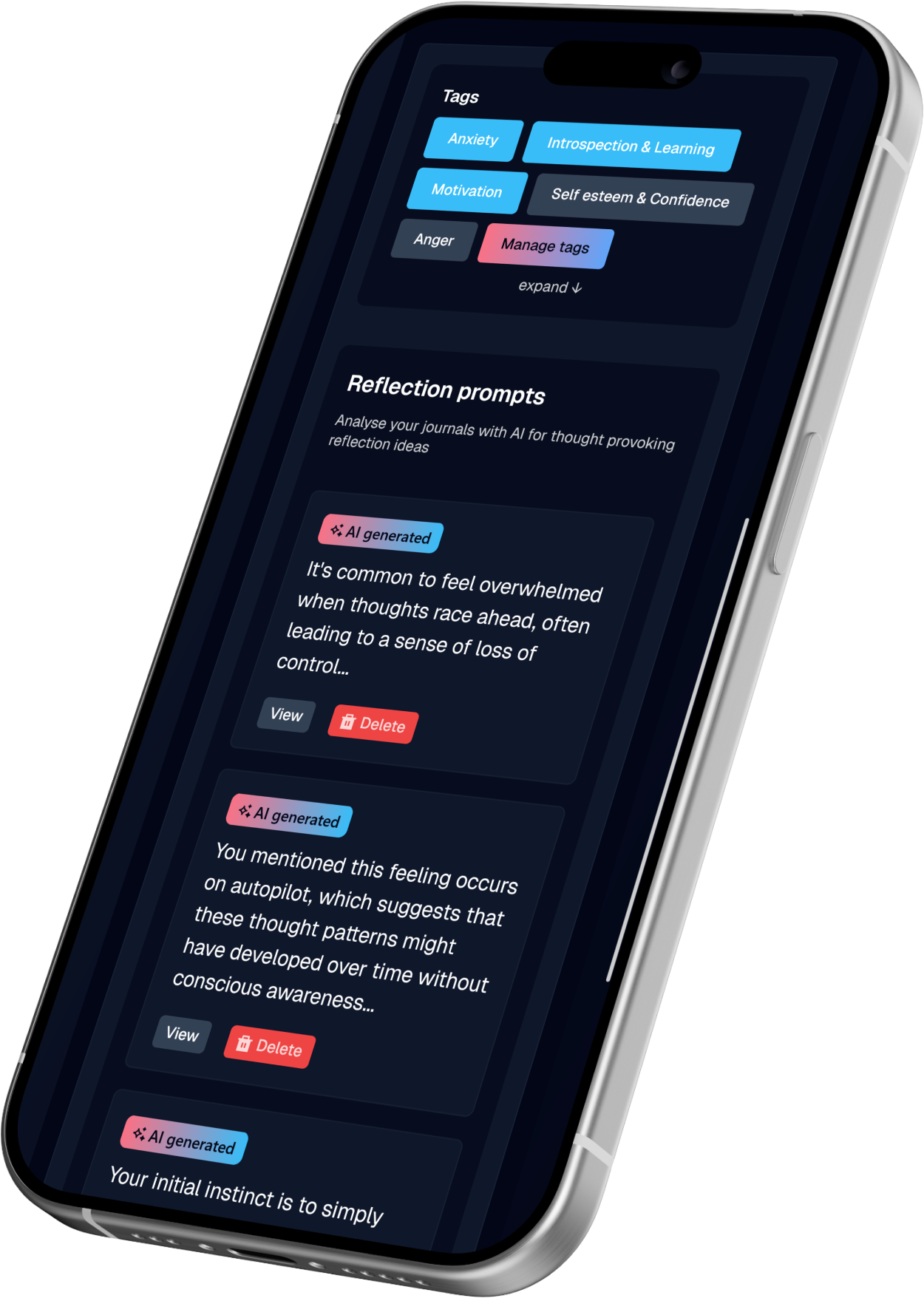 - Get personalised reflection prompts for a fresh angle on self-reflection.